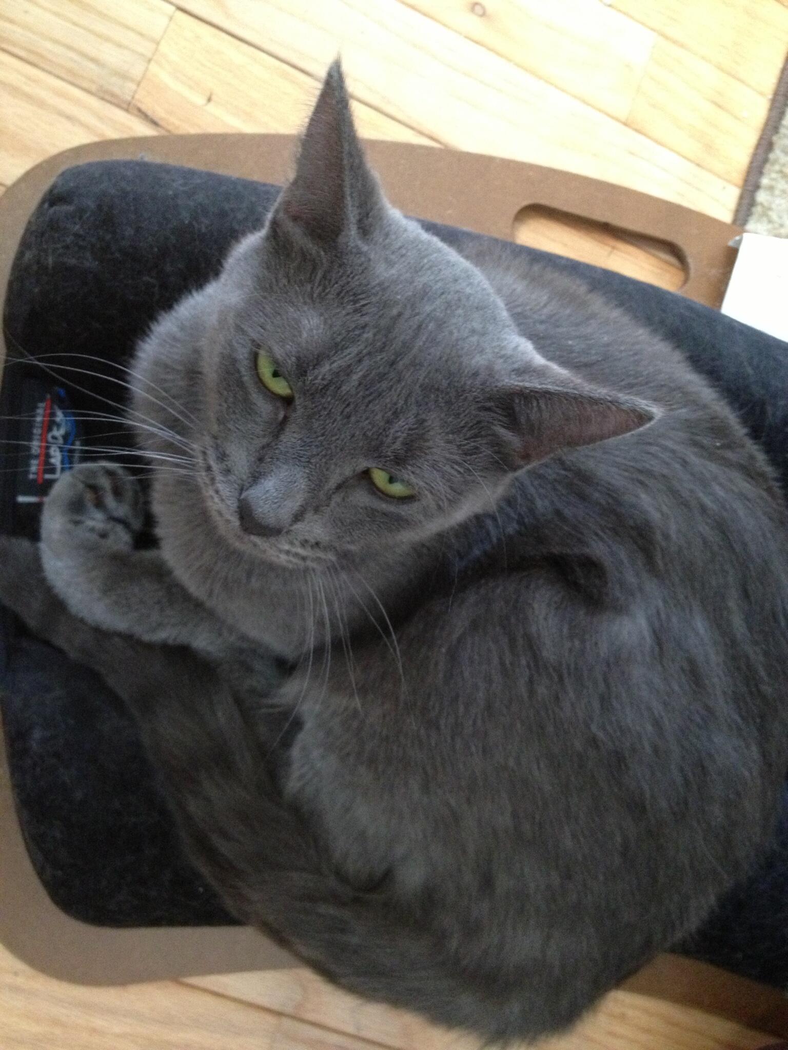 New kitteh Natasha is settling in fairly well, thank god, though she's a bit skittish. I'm told she's a lap cat, we'll see.
